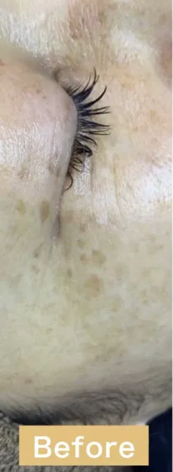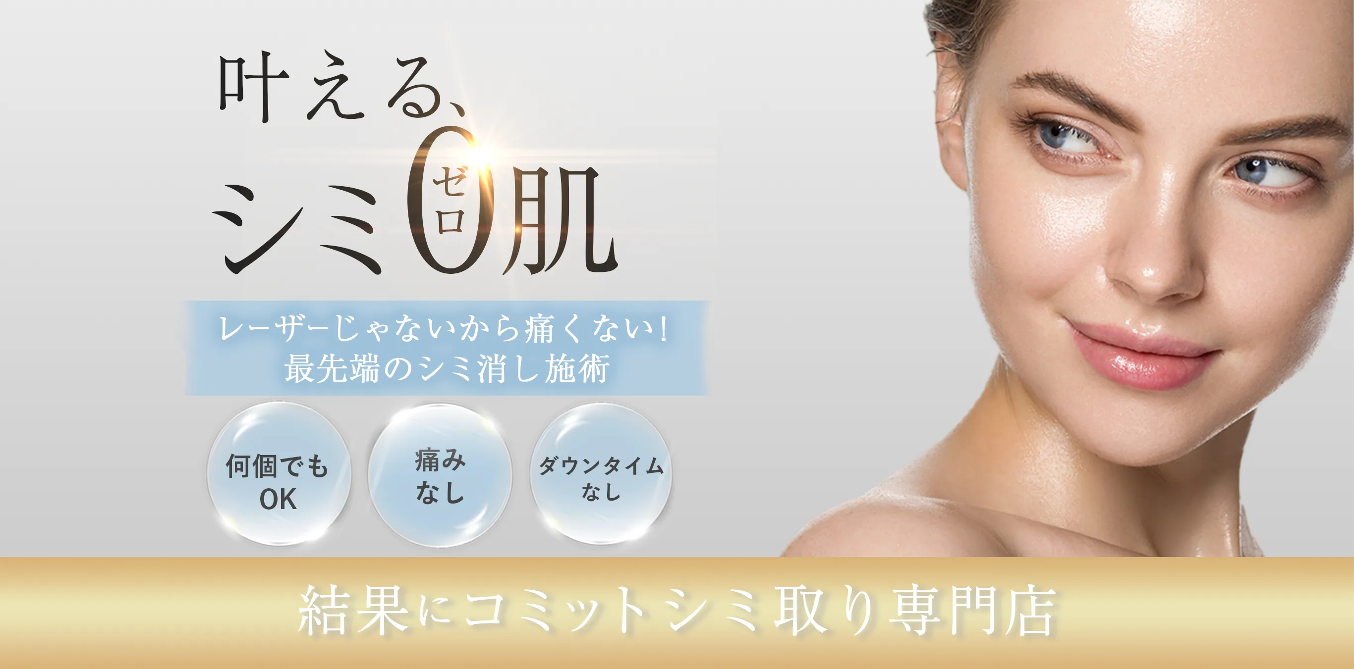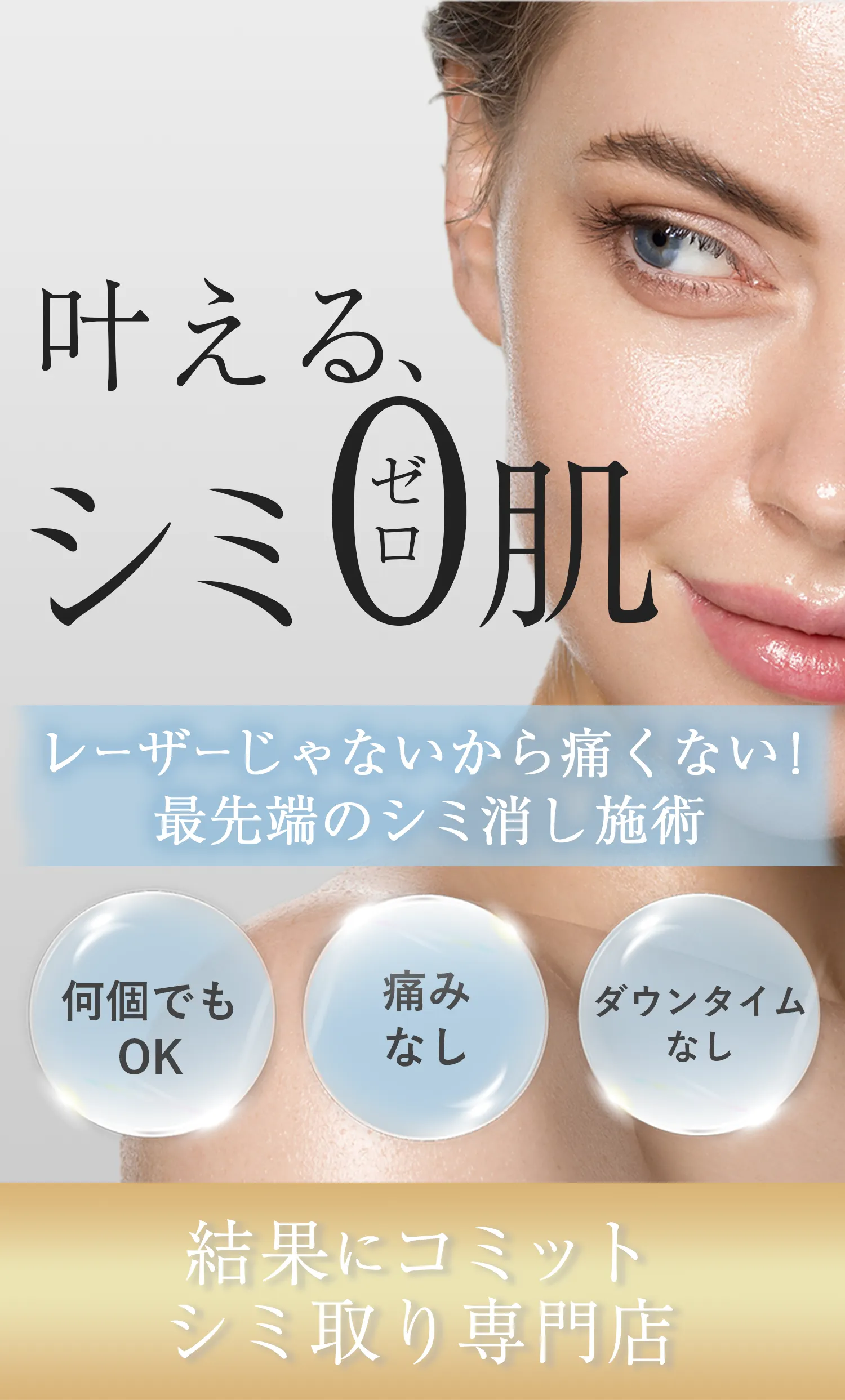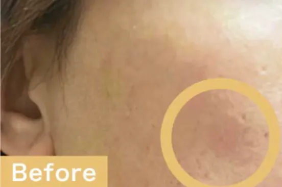 レーザーでアプローチできない薄いシミにも施術可能となっております。また目元などレーザーでは施術ができない部位に関しても施術可能でございます。※唇は粘膜になるため、施術ができかねます。