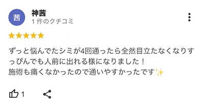 シミのレーザー治療を痛みにより断念してしまった方や痛みを感じやすい方でも眠ってしまう方が多くいらっしゃいます。痛みの感じは爪楊枝でチクッとされる程度の痛みと感じる方が多くなっております。 実際の施術時に痛み確認をさせていただいておりますので、ご安心くださいませ。